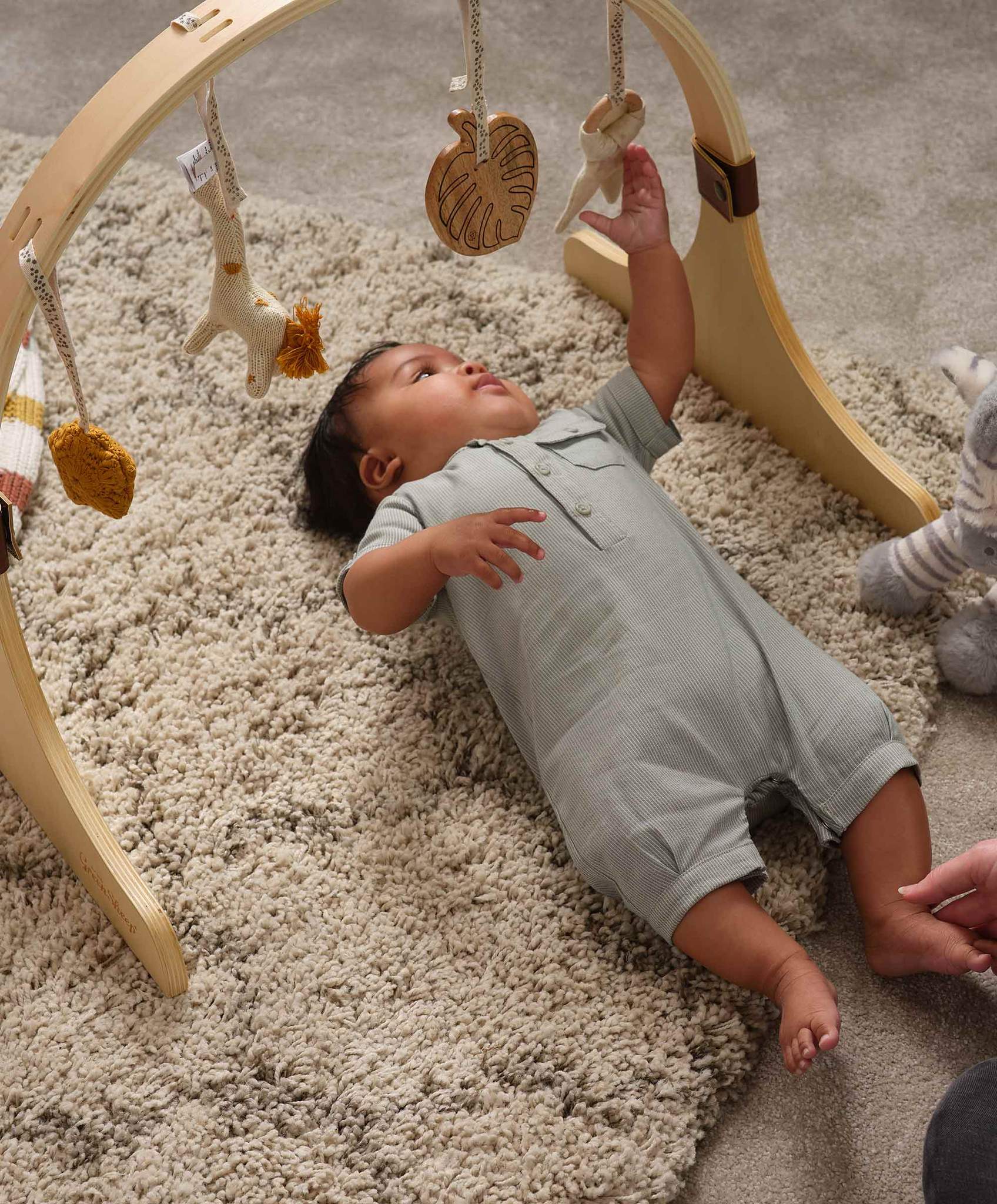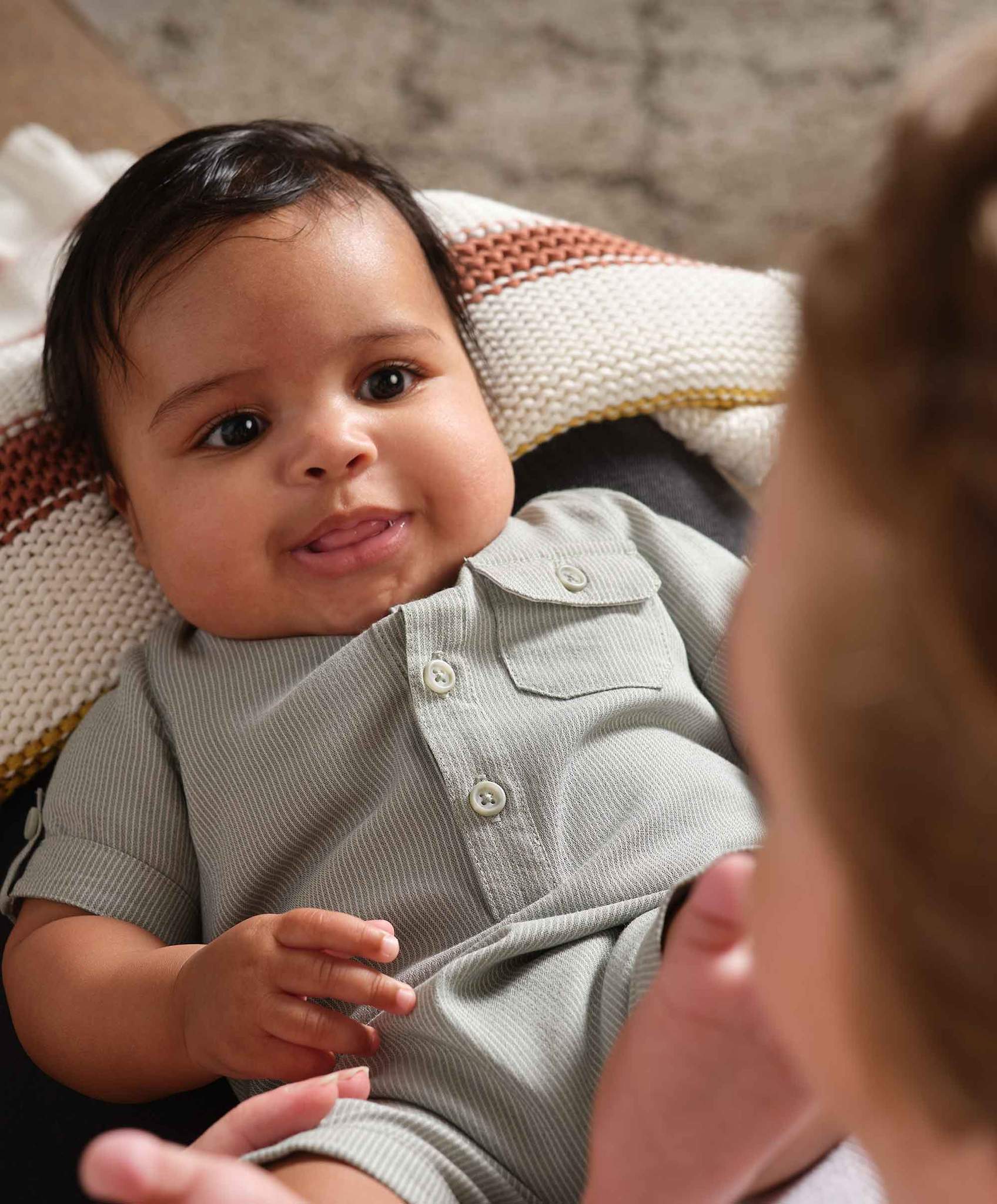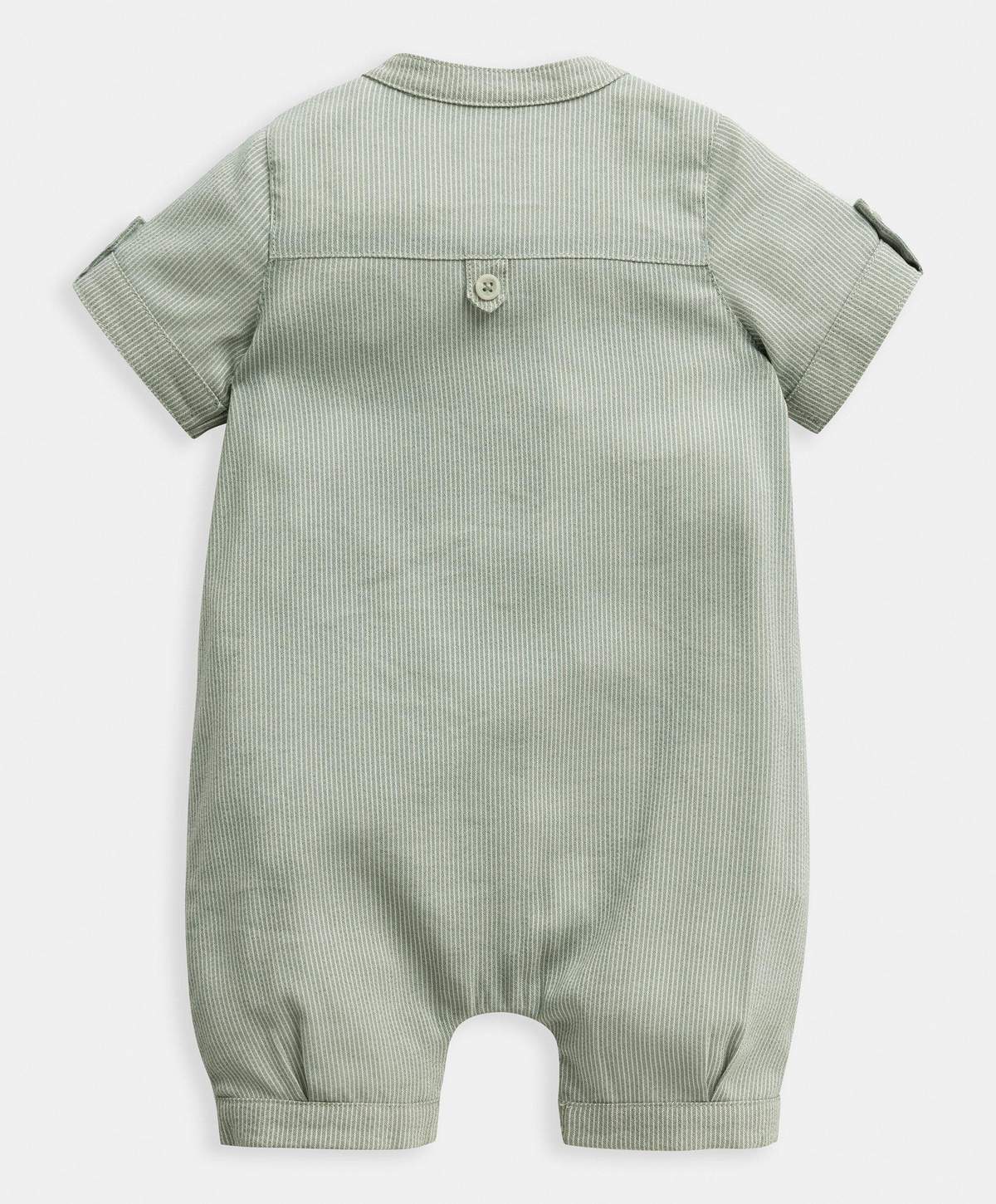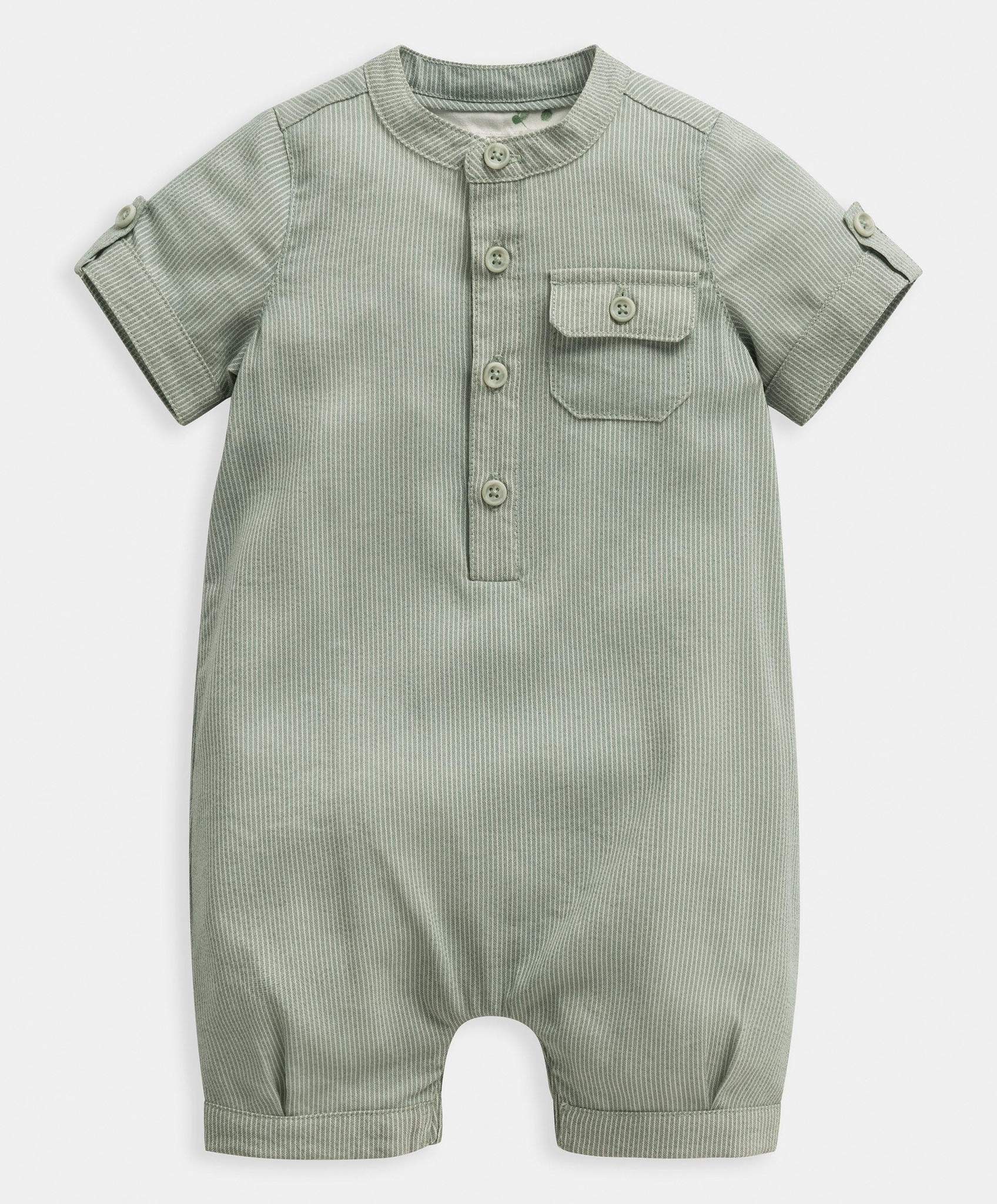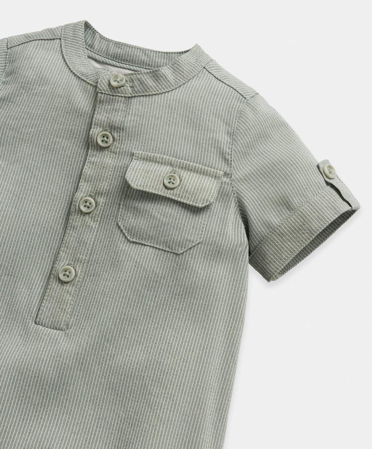 Jumper verde de manga corta con rayas verdes y botones delanteros.