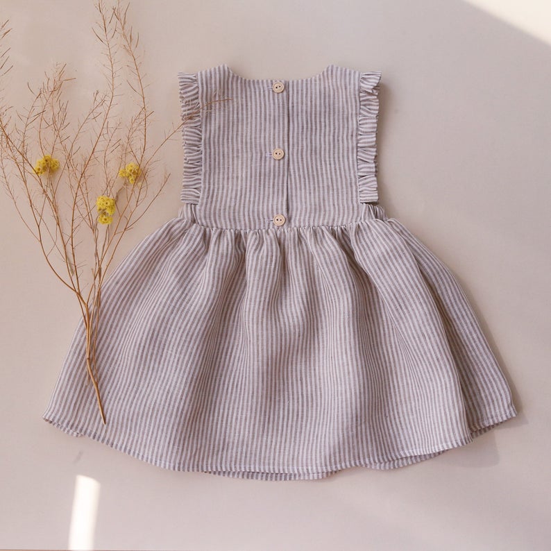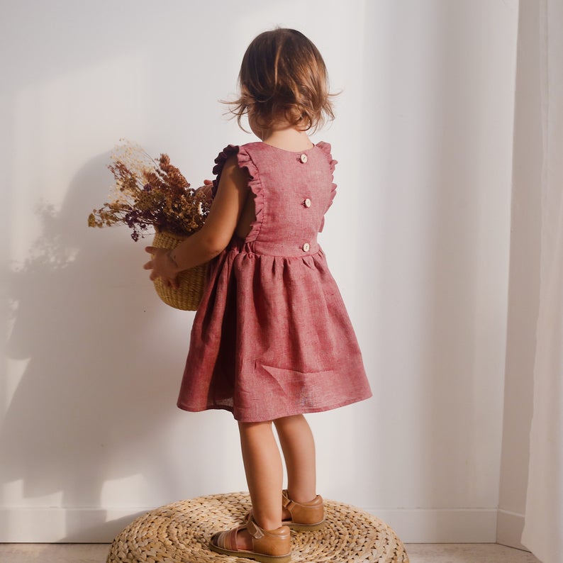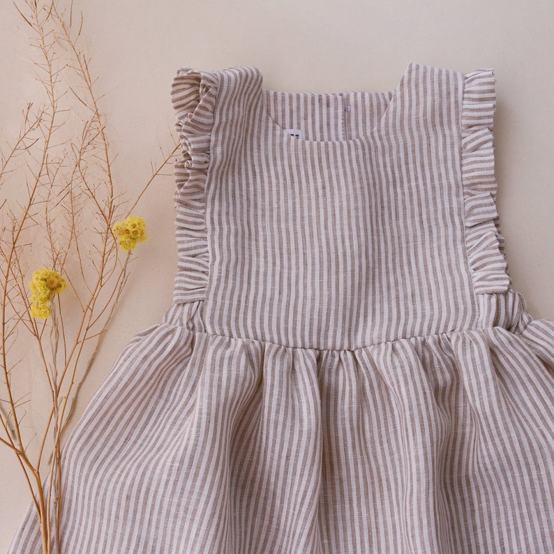 Vestido estilo pinafiore de lino con mangas fruncidas.